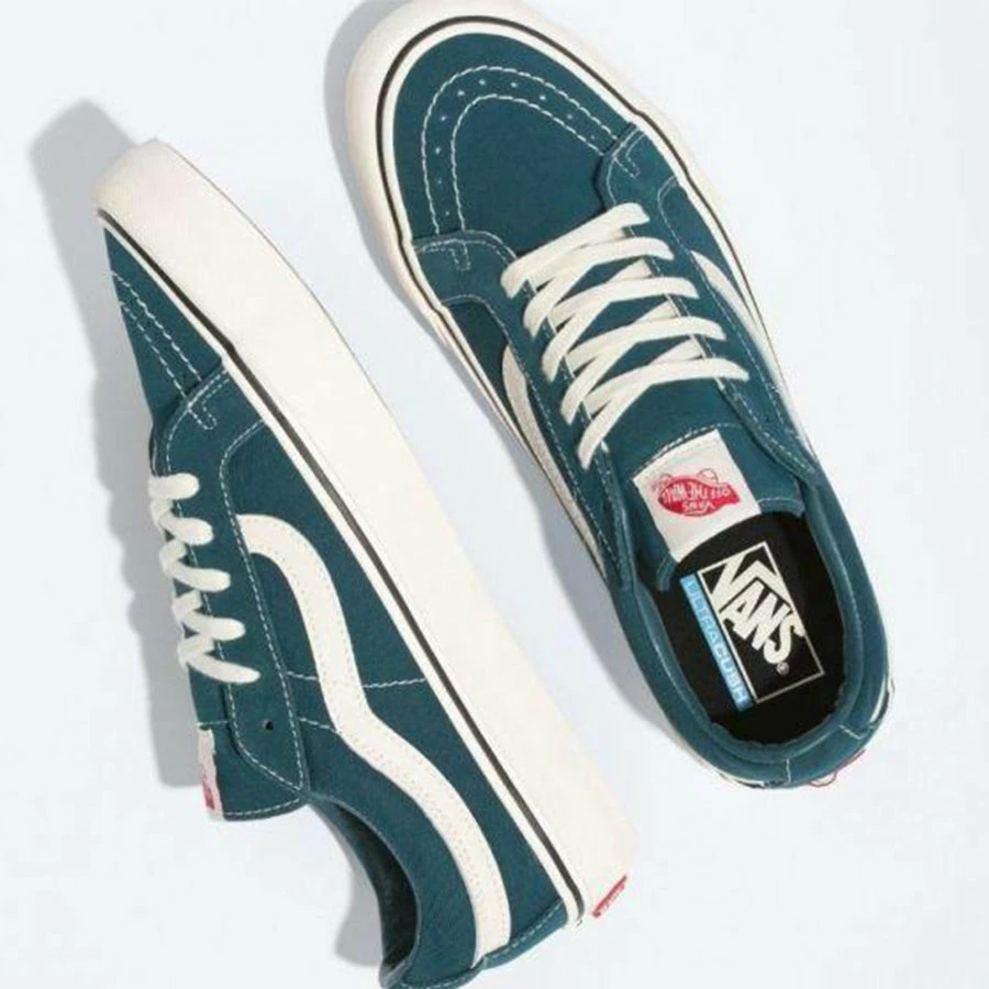 The Sk8-Low, a takedown of the legendary Vans high top skate shoe, is built with an array of colors and materials to provide a familiar Sk8-Hi aesthetic in a low top shoe.